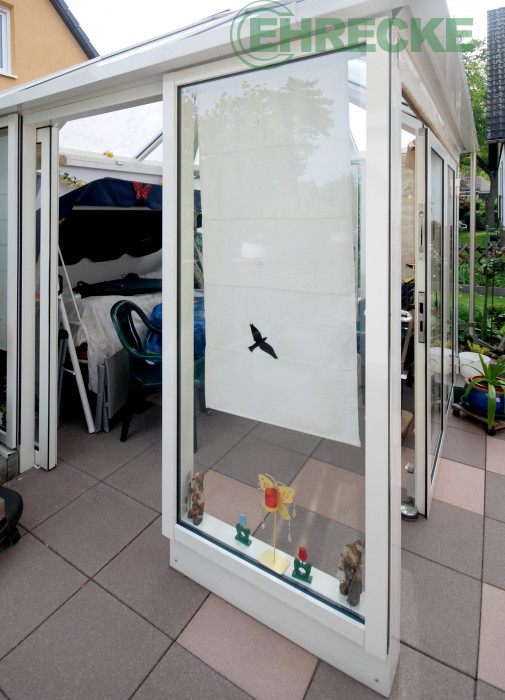 Scheiben mit Schutzaufklebern, die Vogelanschlag vermeiden sollen